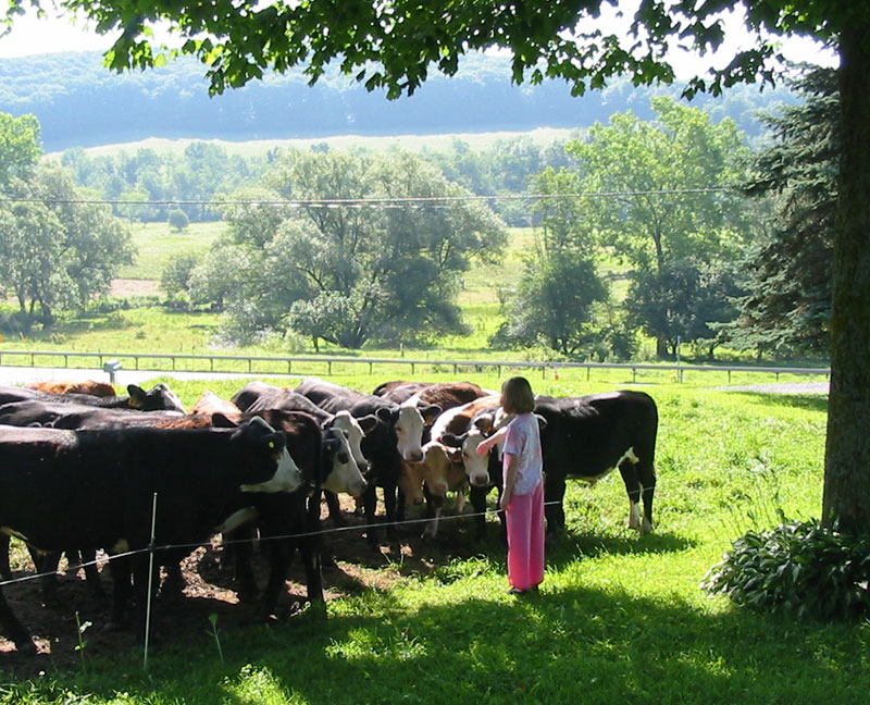 Healthy animals, raised outside, are the result of being well cared for. The herd is free to pasture on grass, provided with hay, clean water, and treated in a humane manner.